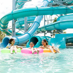 Refrésquese en alguna de nuestras nueve piscinas o diviértase en los toboganes y juegos del parque acuático. Mientras esté aquí aproveche la oportunidad de practicar los aerobics en el agua.