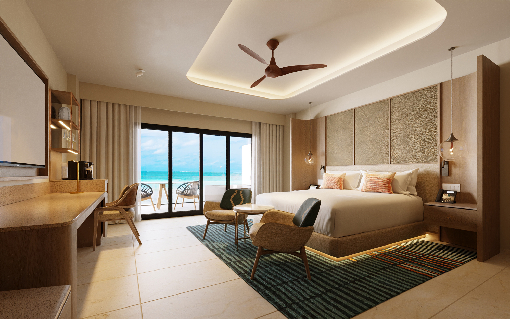 Inspired by the harmony of earth and water, our suites are designed to restore and rejuvenate. Expansive layouts frame breathtaking Caribbean Sea views, while regional artwork, bespoke details, and modern comforts create a seamless dialogue with nature. From private whirlpools and tranquil mornings by the mangroves to evenings soothed by the hush of waves,